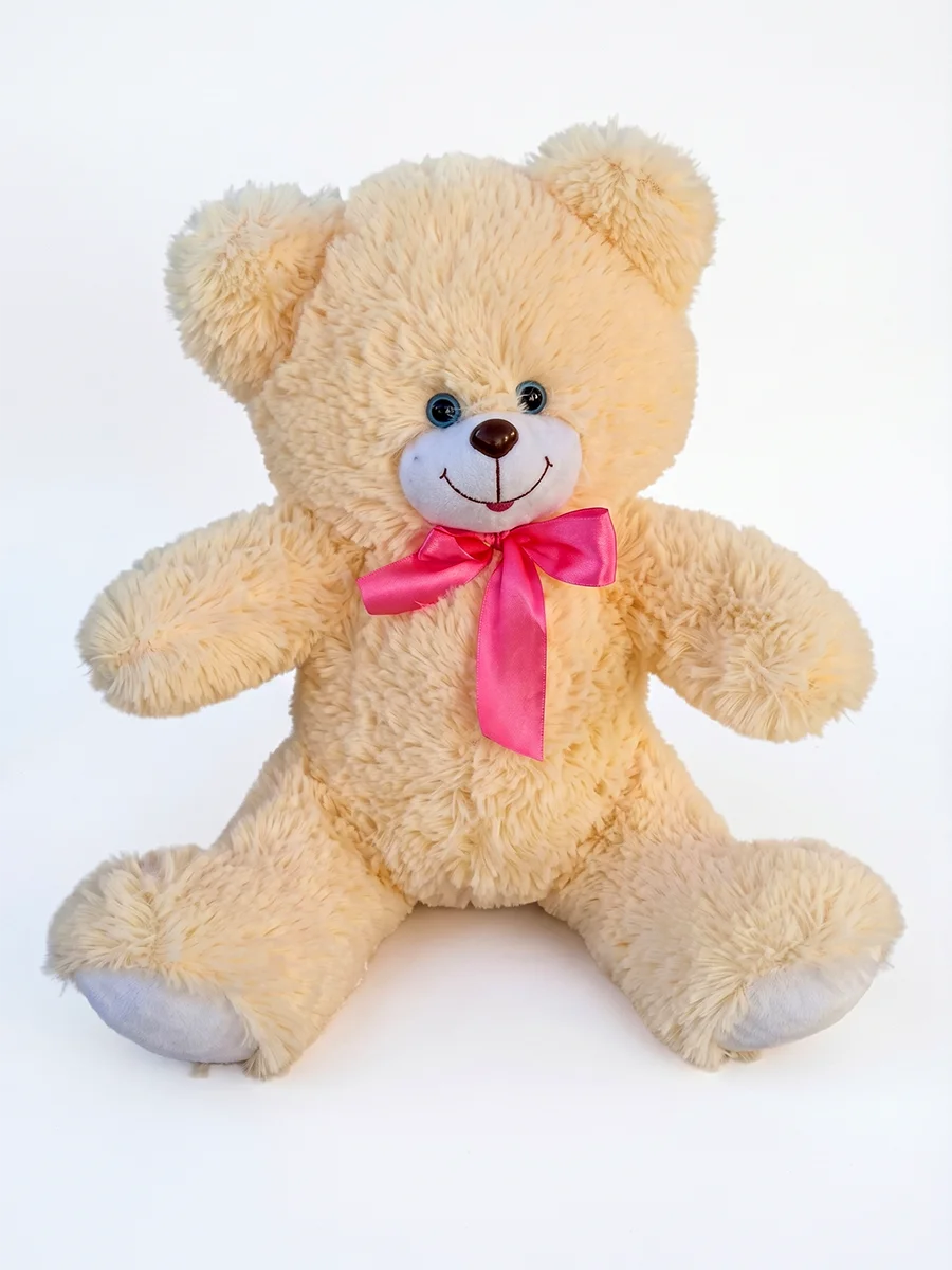 Теплий, як сонячне світло, і ніжний, як улюблена мелодія. Цей ведмедик кольору вершкового крему створений для того, щоб наповнювати серце теплом. Його вигляд настільки затишний, що він миттєво стає частиною дому, нагадуючи про щирість ваших намірів. Тепла палітра: м’який кремовий відтінок символізує світлі почуття та чистоту душі. Гра контрастів: яскраві фуксієві та ніжні рожеві стрічки додають іграшці грайливості, роблячи її акцентним елементом у подарунку. Ідеальний розмір: 70 см — це ідеальний формат для того, щоб ведмедика було зручно обіймати, тримаючи в руках улюблену книгу або чашку чаю. Текстура хмаринки: преміальне хутро з ефектом «живого» дотику забезпечує неймовірне задоволення від кожного контакту.